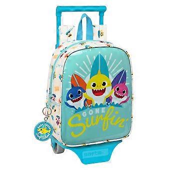 School Rucksack with Wheels Baby Shark Surfing Blue White 22 x 27 x 10 cm