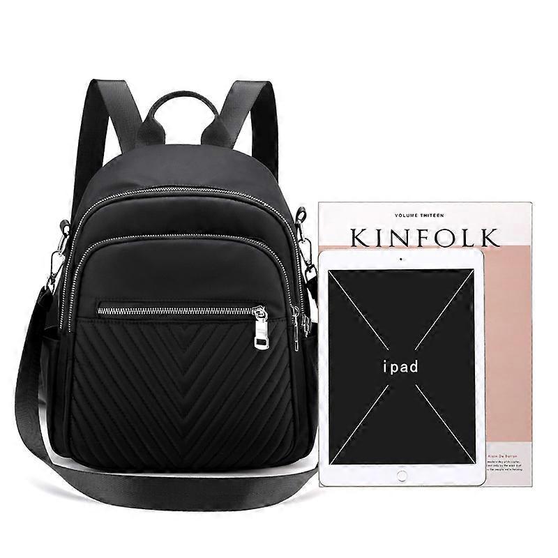 Women's Backpack, Elegant Shoulder Bag 2 in 1 Nylon Waterproof, Small School Bag, Anti-theft Backpack for Daily Use, School, Travel, Hiking, Work, Bla