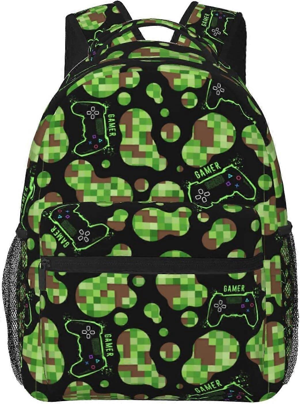 Camouflage Dots Backpack for School - Video Game Backpacks for Boys Girls Green Gamer Backpack Camo Preschool Bookbags Rucksack Daypack