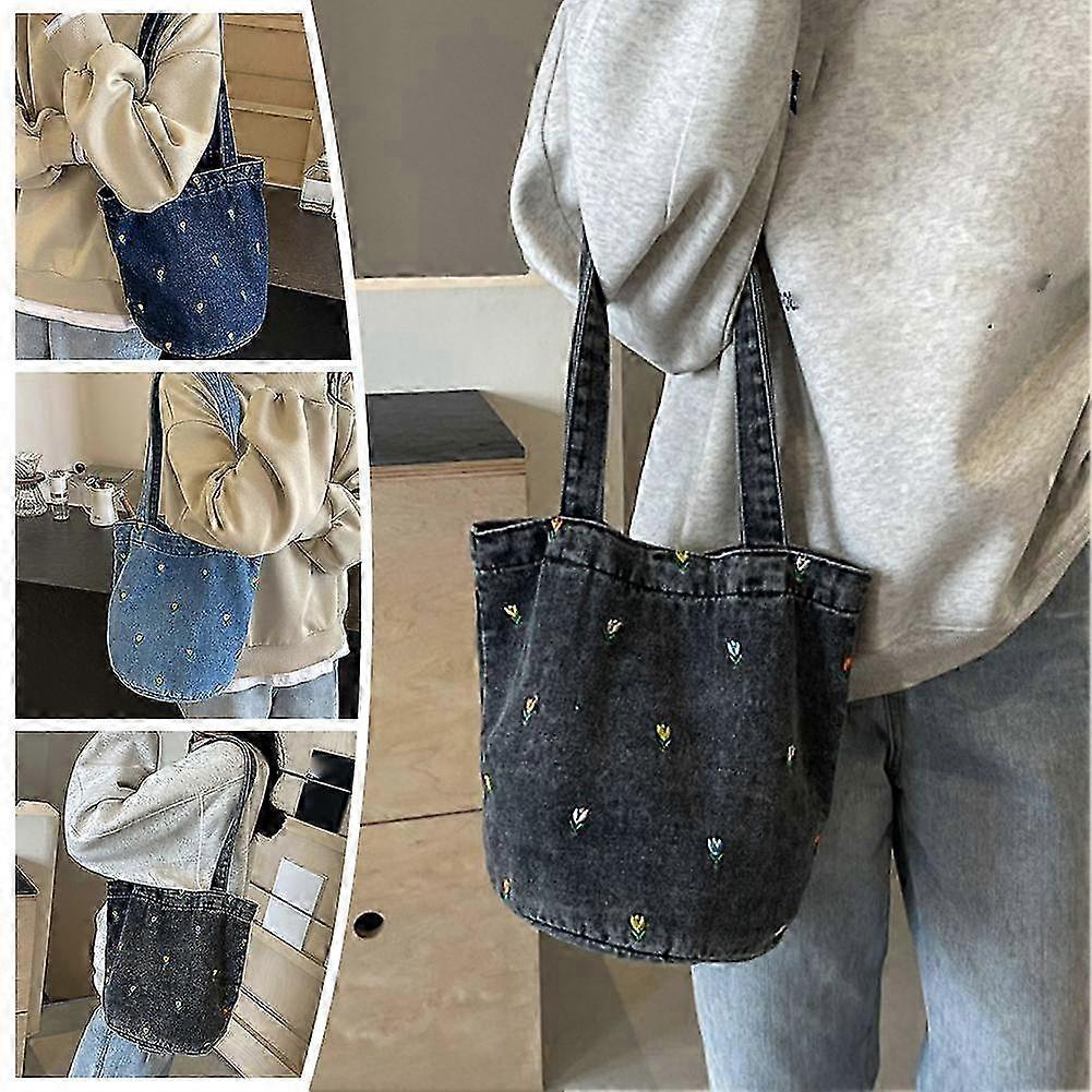 Summer Canvas Bag Embroidered Handbag Denim Bag Large Capacity Shoulder Bag