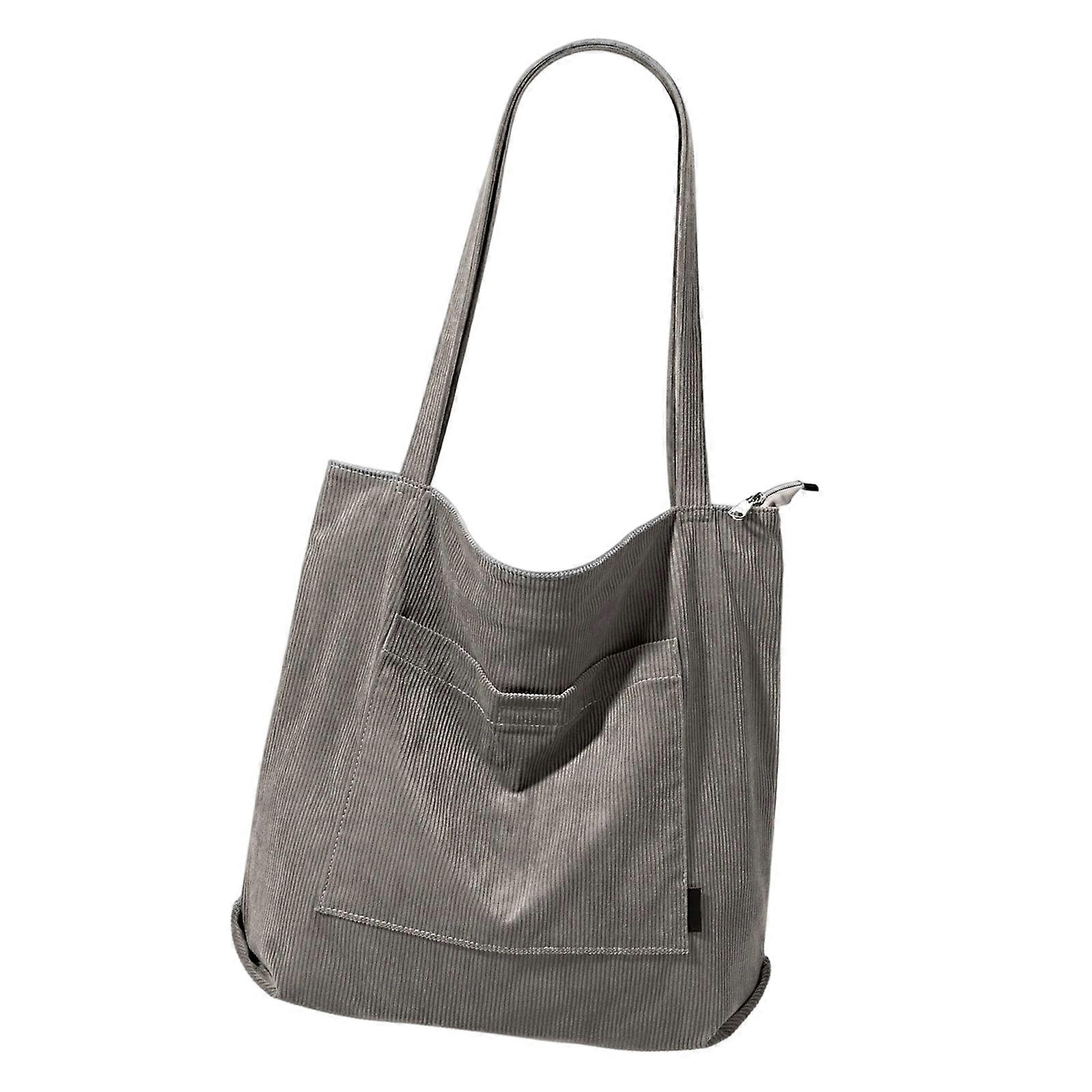 Fashionable And Practical Corduroy Shoulder Bag For Women Casual Top Handle Handbag with Ample Space For Daily Essential Gray
