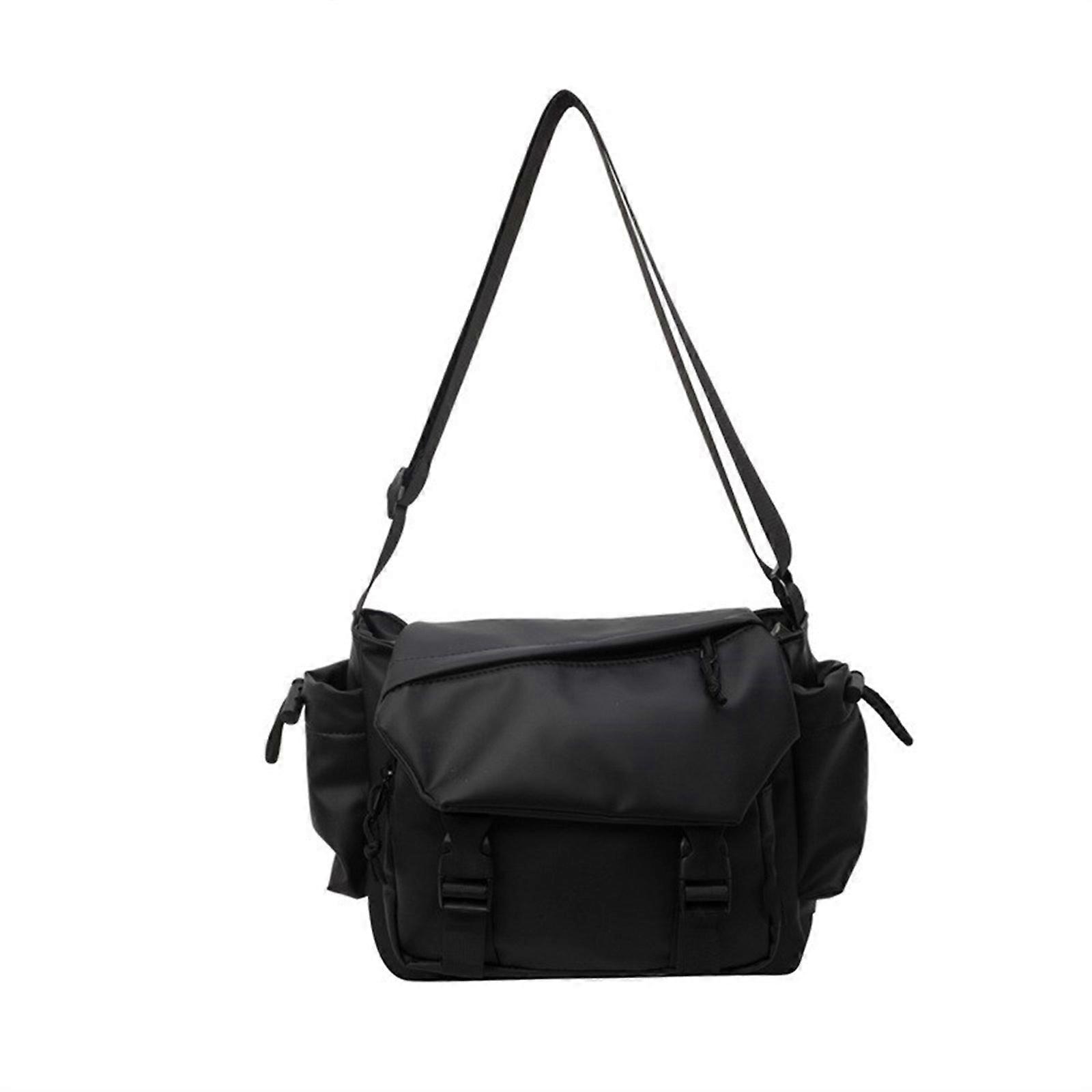 Women Men Casual Large Capacity Shoulder Bag for School College Shopping Messenger Bag Travel Oxford Cloth Crossbody Bag Black (20cm<Max Length<30cm)