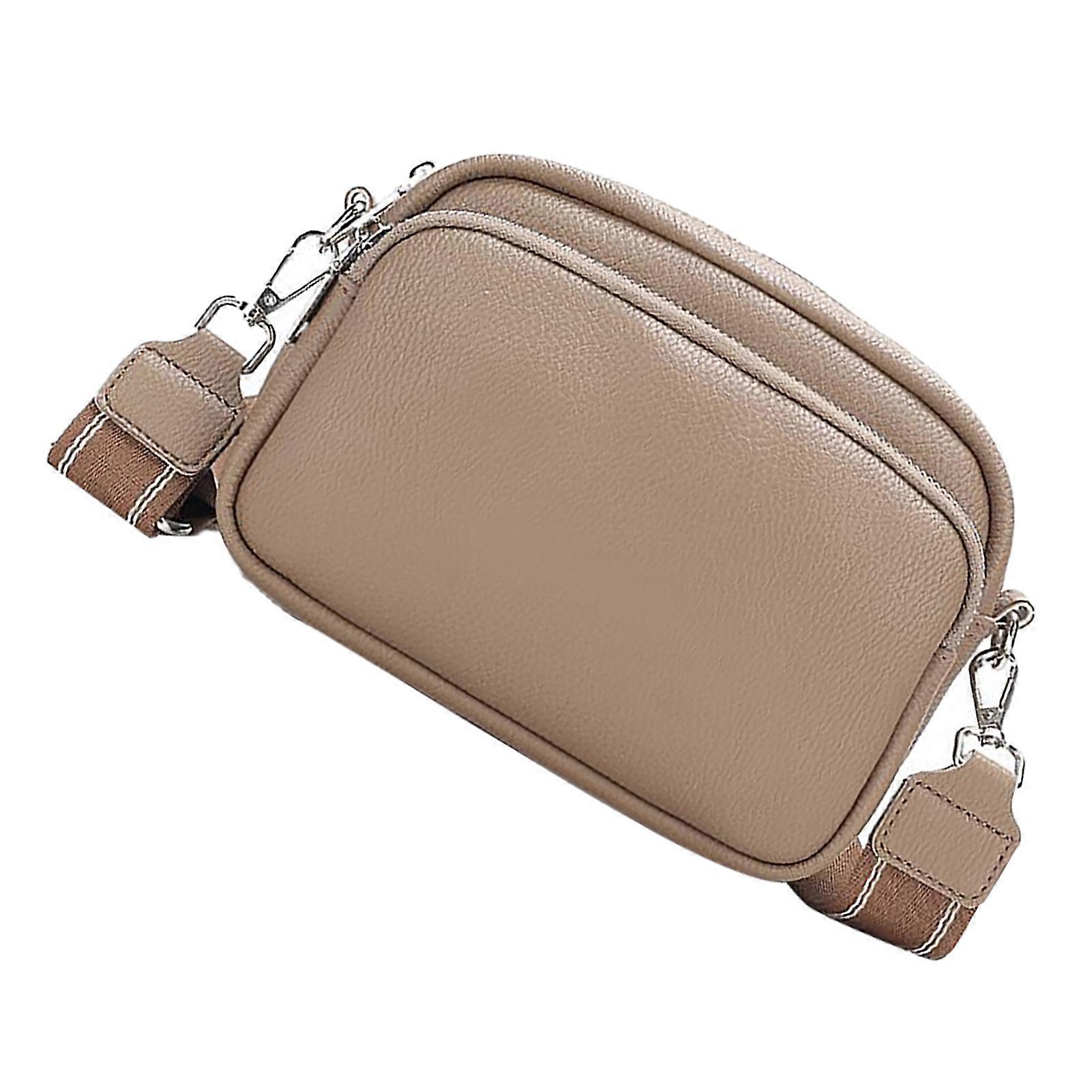 Women PU Shoulder Bag 21x15.5x8cm Khaki Double Zipper Pocket