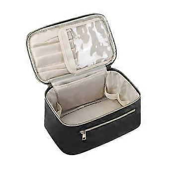 Makeup Bag, Travel Make Up Organizer Cosmetic Brush Bags Case For Women In Eco Vegan Leather,black