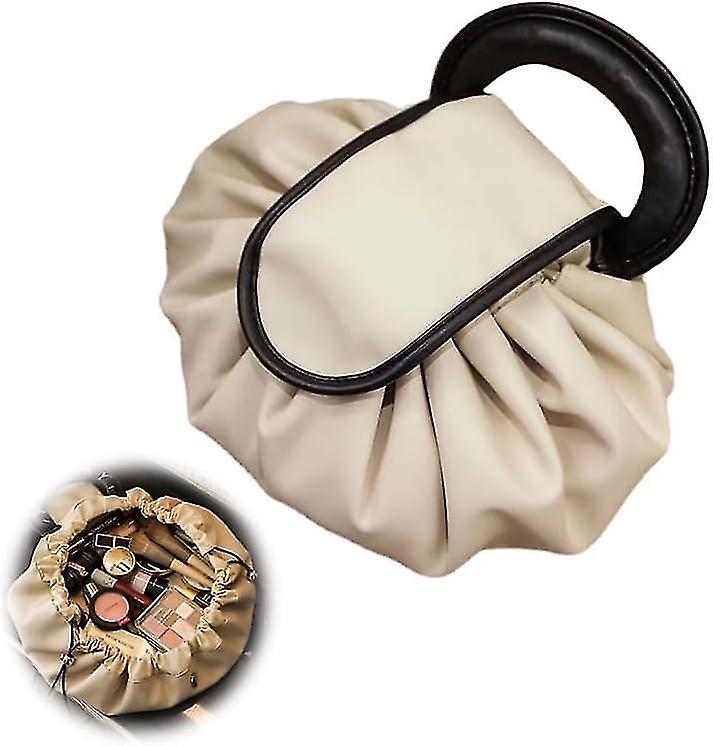 Travel Drawstring Makeup Bag, Waterproof Pu Makeup Pouch, Large Magic Cosmetics Pouch For Women, Flat Lay Makeup Storage Bags
