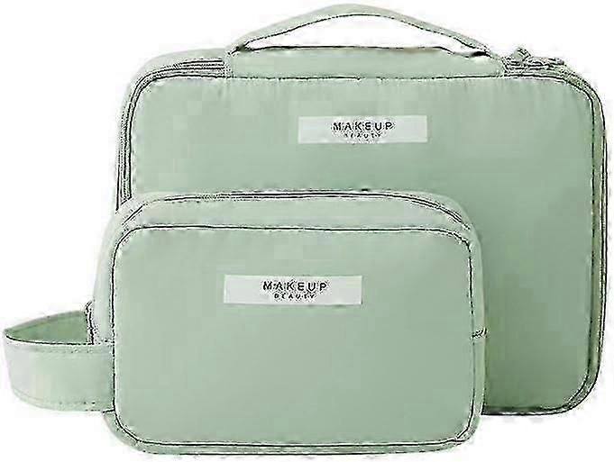Cosmetic Bag, Waterproof Makeup Bag, Travel Makeup Bag, Portable Makeup Bag, Cosmetic Bag Organizer for Women and Girls, 2 Pcs (Green)