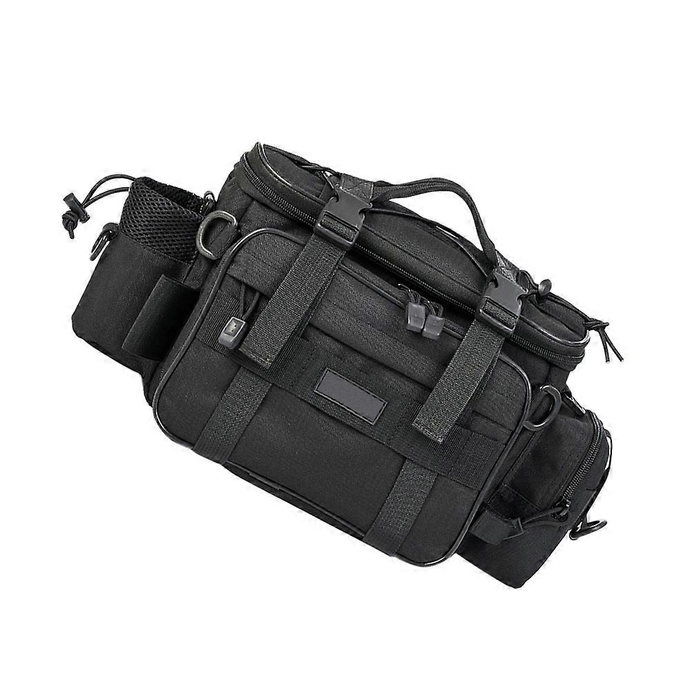 Portable Outdoor Fishing Gear Bag with Multipurpose Pockets and Oxford Cloth Black 10.5 Inches