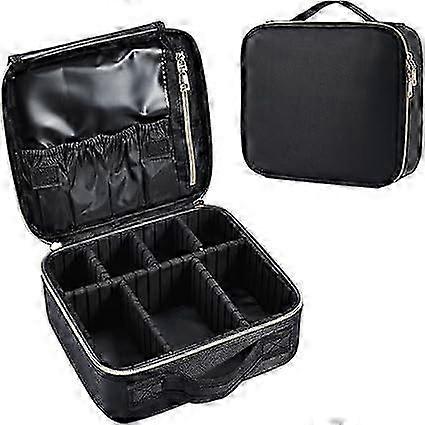 Practical makeup bag: Our black makeup bag with dividers allows you to adjust the space of the makeup bag yourself and provides a clear and convenient storage solution for your makeup. Separate makeup brush holders: This cosmetic bag provides makeup brush slots so you can neatly store brushes with different functions. And comes with a lid to protect your makeup brushes. Comfortable Design: There is a handle that makes this makeup organizer easy to carry. The double zipper allows you to open and close this makeup bag more quickly. The makeup bag has a zippered pocket for eye shadow, palette, etc. Sturdy and stylish: The vanity and makeup bag is made of durable Oxford fabric. High-quality workmanship and elegant design make our makeup case not only practical, but also a stylish companion when traveling or at home.Dimensions: 25.5 x 22.5 x 9.5 cm (L x W x H) Perfect for travel: thanks to its compact size and lightweight material, our makeup storage case is ideal for traveling and allows you to always have your favorite products at your fingertips. It is perfect as a toiletry bag for toiletries. Note: The data is all manually measured, please allow 1-3cm error due to the difference in light and display, it may have color differences, please refer to the actual item received.