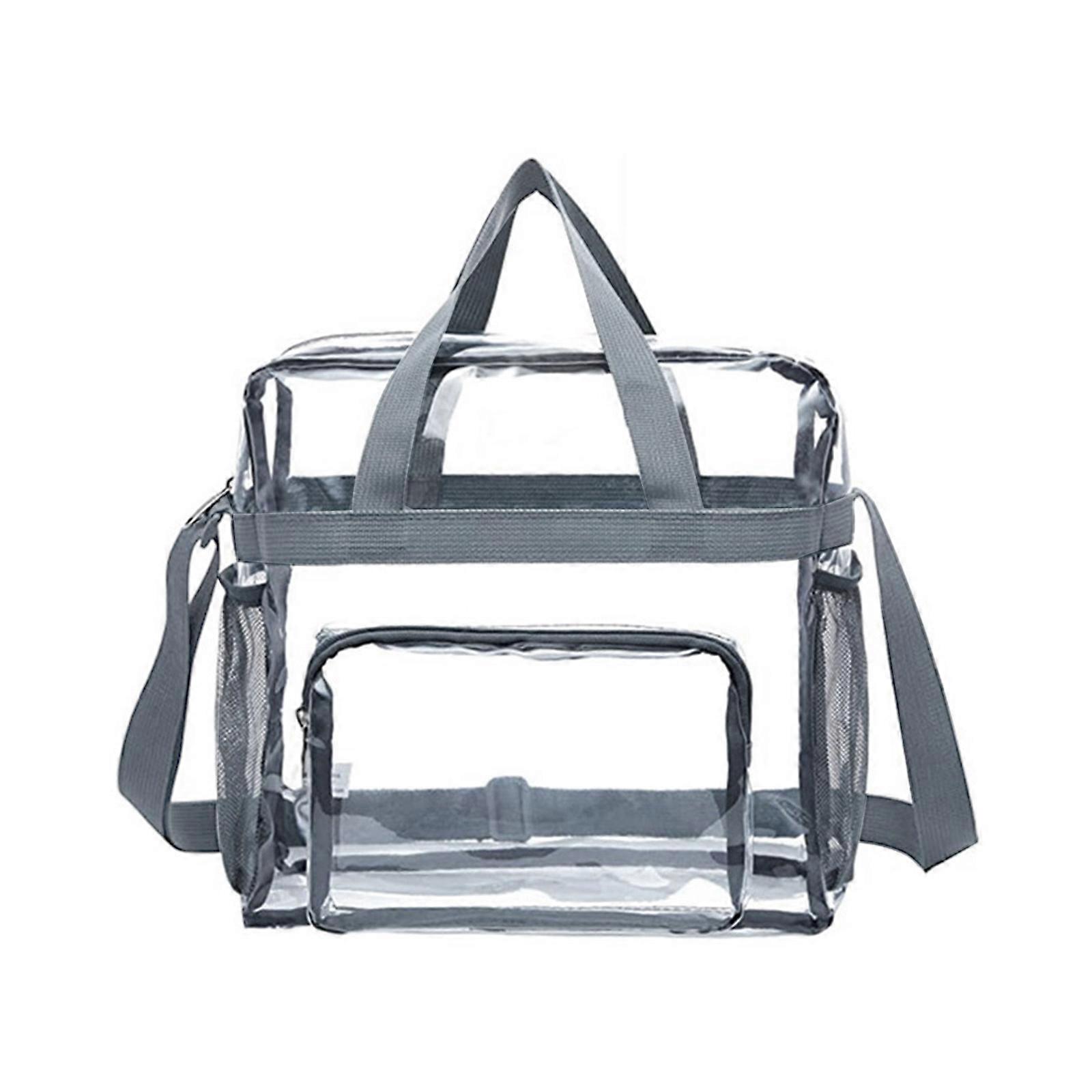 PVC Transparent Makeup Bag See Through Tote Bag with Shoulder Strap Large Capacity Storage Bag for Travel Work Sports Gray