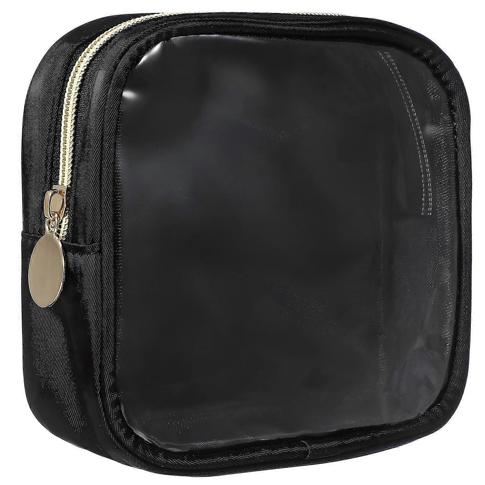Clear Mini Makeup Bag Portable Cosmetics Organizer Pouch Black 13.00X13.00X3.00CM Sturdy and Protective 1Pack