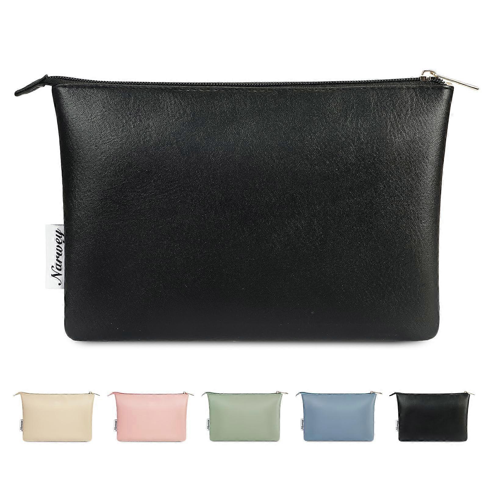 Small Makeup Bag for Purse Small Cosmetic Bag Leather Women Travel Makeup Pouch Zipper Pouch (Black)