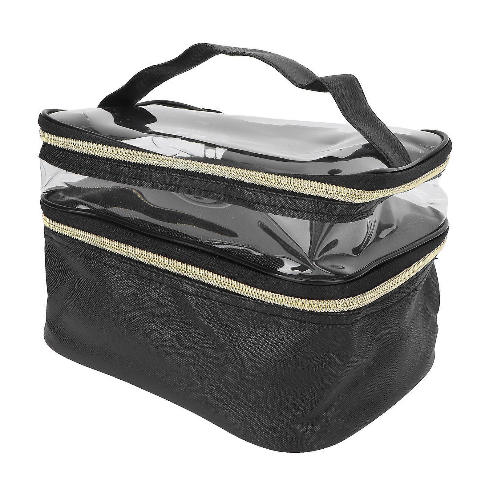 Large Capacity PVC Makeup Bag Black Double Layer Travel Zip