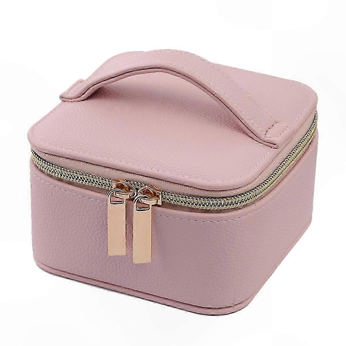 SMART SPACE SAVER ORGANIZER: This travel jewelry case features a space-saving design with high storage capacity. It includes 4 removable zippered pockets for storing necklaces, bracelets, and watches; an earring grid that holds up to 6 pairs of earrings; and a ring roll for 10 rings, ensuring organized storage for your accessories. NOT KNOTTED: Designed with individual jewelry compartments, this compact jewelry box keeps each piece separated, preventing tangling and damage. The dedicated storage layout helps maintain order for necklaces, bracelets, and other items, making it ideal for travel. HIGH QUALITY MATERIAL: This jewelry travel organizer is crafted from PU material with a smooth texture and elegant appearance. It features smooth double-way metal zippers and a soft velvet interior lining that protects your jewelry while enhancing durability. The design combines practicality with style for everyday use. EFFORTLESSLY PORTABLE: Lightweight and compact, this travel jewelry case easily fits into luggage or handbags. Its convenient size allows quick access to your accessories wherever you go. VERSATILE STORAGE: This jewelry case is designed to store necklaces, earrings, rings, bracelets, watches, and hairpins. It also makes a thoughtful gift for loved ones on occasions such as birthdays, Valentine's Day, graduation, Mother's Day, and Christmas. Color: Pink Material: PU Package Contents: 1 x Travel Jewelry Case Note: Light reflection and differences in display screens may cause slight variations in color between the product image and the actual item. Measurement may vary by up to +/- 1-3 cm.