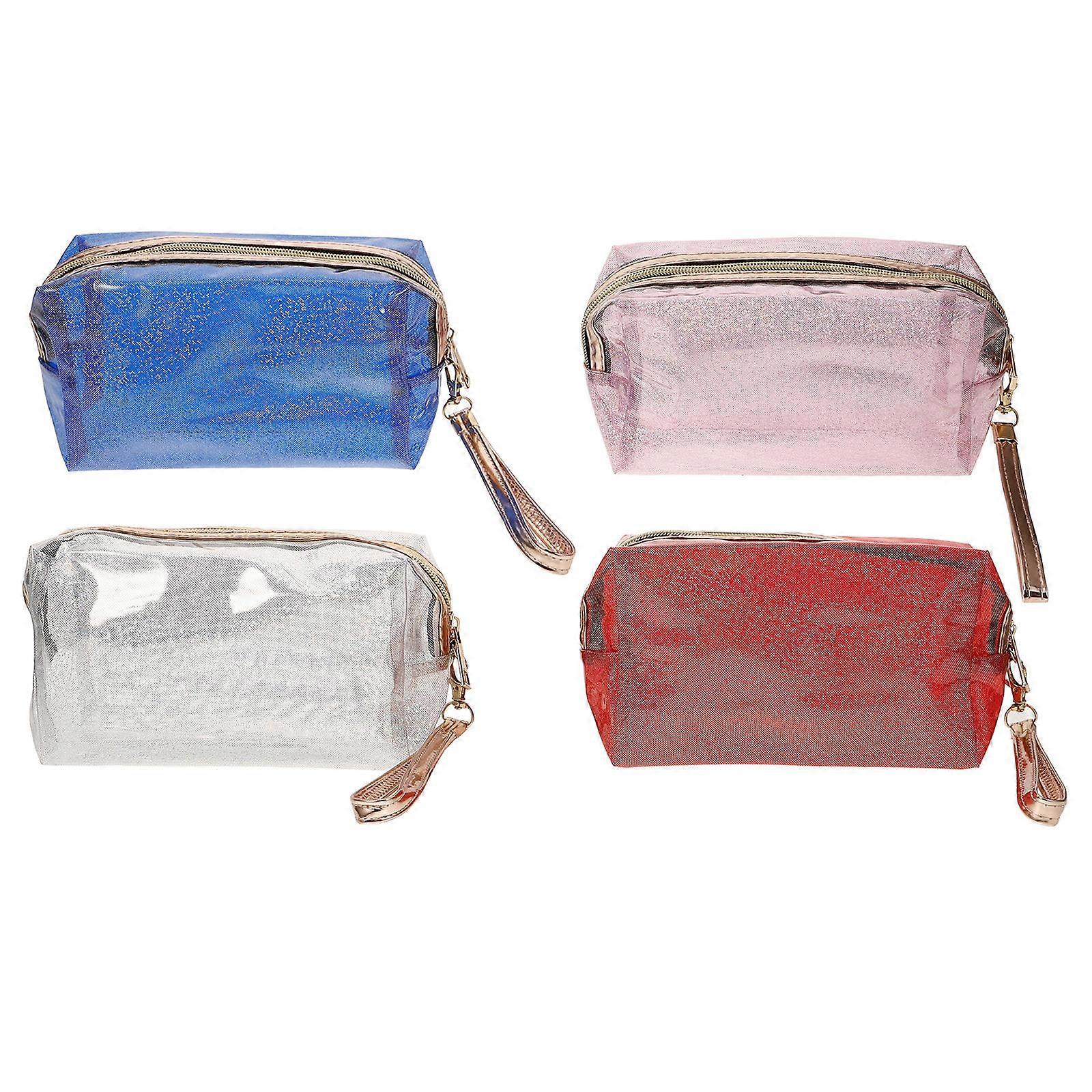 Small Makeup Case Organizer Bag Transparent Design Silver 4Pcs