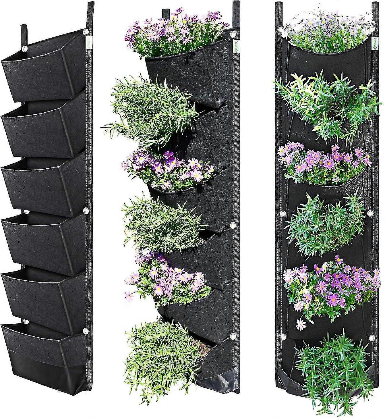 Vertical Grow Bag, 6 Pockets Wall Mounted Grow Bag for Indoor & Outdoor Flowers Herbs Succulents Strawberry - Black 1 Piece