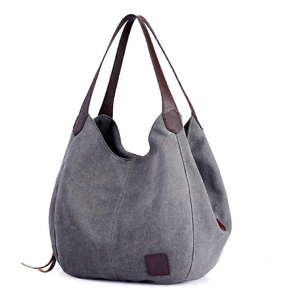 Vintage Canvas Shoulder Handbag for Women – Spacious Mummy Style Bag for Daily, Work and Travel Use – Durable Thickened Fabric – Grey