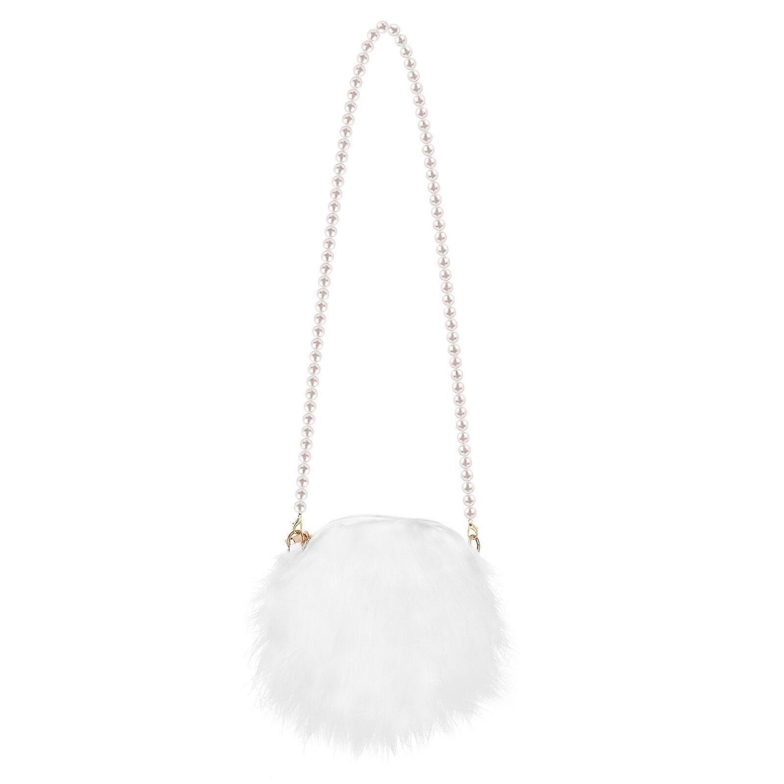 FENICAL Underarm Bag Fashion Shoulder Bag Fluffy Bag Girl Women Plush Crossbody Bag with Pear Chain (White)