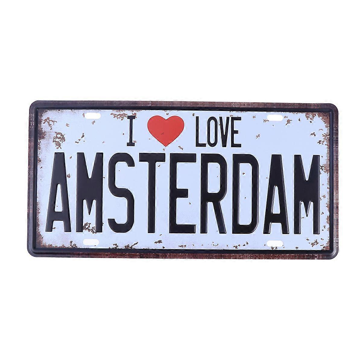 Simple Truth Vintage Decorative Signs Tin Metal Iron Car Sign Painting for Wall Home Bar Coffee Shop (I LOVE AMSTERDAM)
