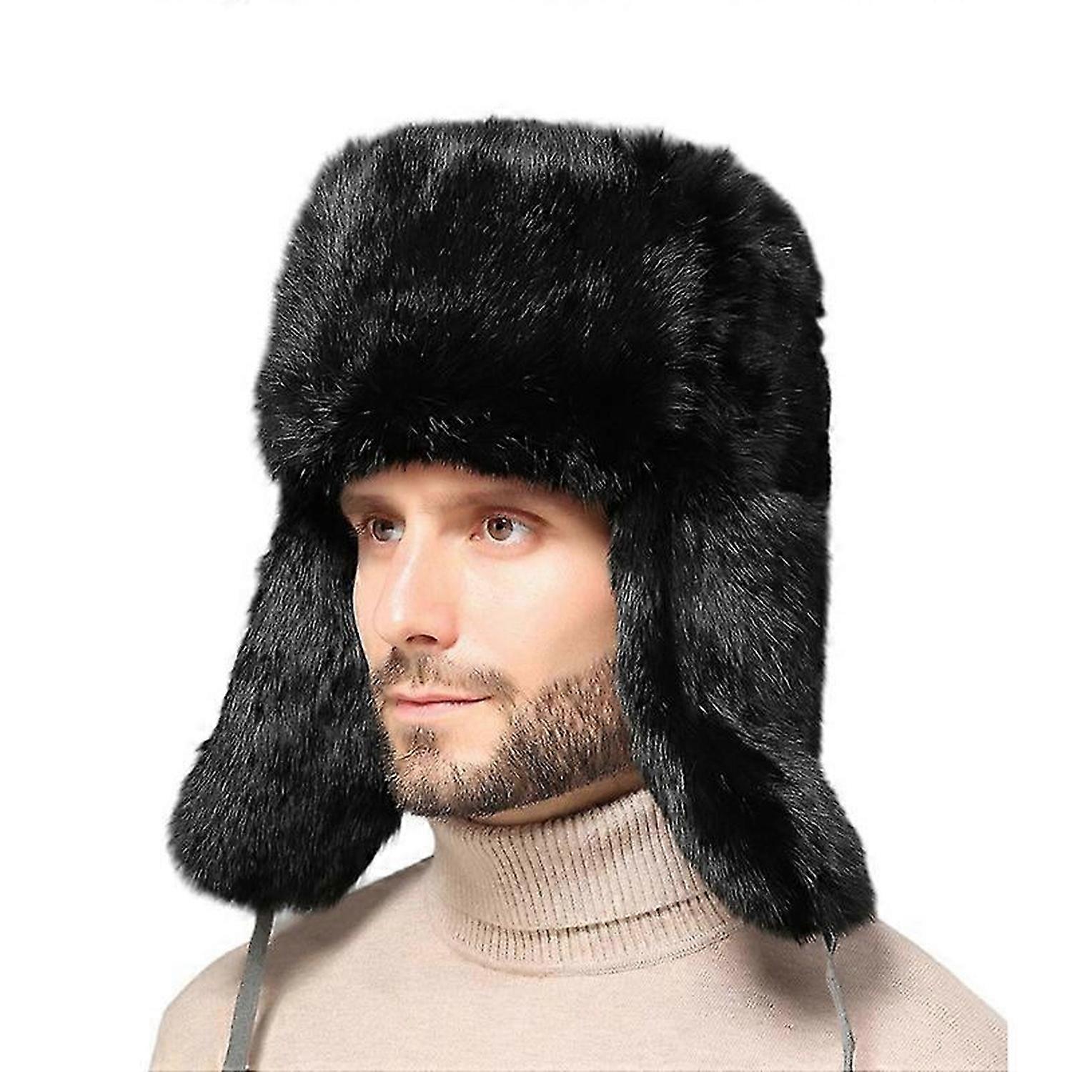 Genuine Rabbit Fur Russian Winter Hat Trapper Bomber w/Ear Flaps Christmas Gifts For Men
