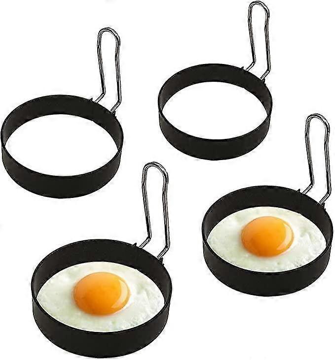 The package contains: 4 egg rings of 6.9 x 7.5 x 1.7 cm. Wonderful gift for friends and family all year round High Quality Stainless Steel: Our egg rings are made of high quality stainless steel, will never rust, warp, Fuzzy handles make it easy to store and move. You don't have to worry about rust and breakage. Easy to use: Our omelette is equipped with a handle attachment and is very easy to use. Arrange the wok and egg rings, place them in a hot wok, place the eggs in the wok and make it. The foldable handle is large - The ring can be easily removed from the pan after setting the egg and it is easy to hold when not in use. Multifunction: in addition to the egg use, these round muffin pans can also be used to make cookies, bacon, potatoes, boiled eggs, pancakes, muffins, burgers, buns and more. You can use our egg maker and use your imagination to make a delicious breakfast. Easy to clean: our product does not stay on the pan, it can easily wash away oil stains, restore the original. The Mold pancake maker can be cleaned with a small amount of dishwasher safe liquid and water. You can also put the dishwasher in for a quick and easy process. The egg ring is like new, without damage.