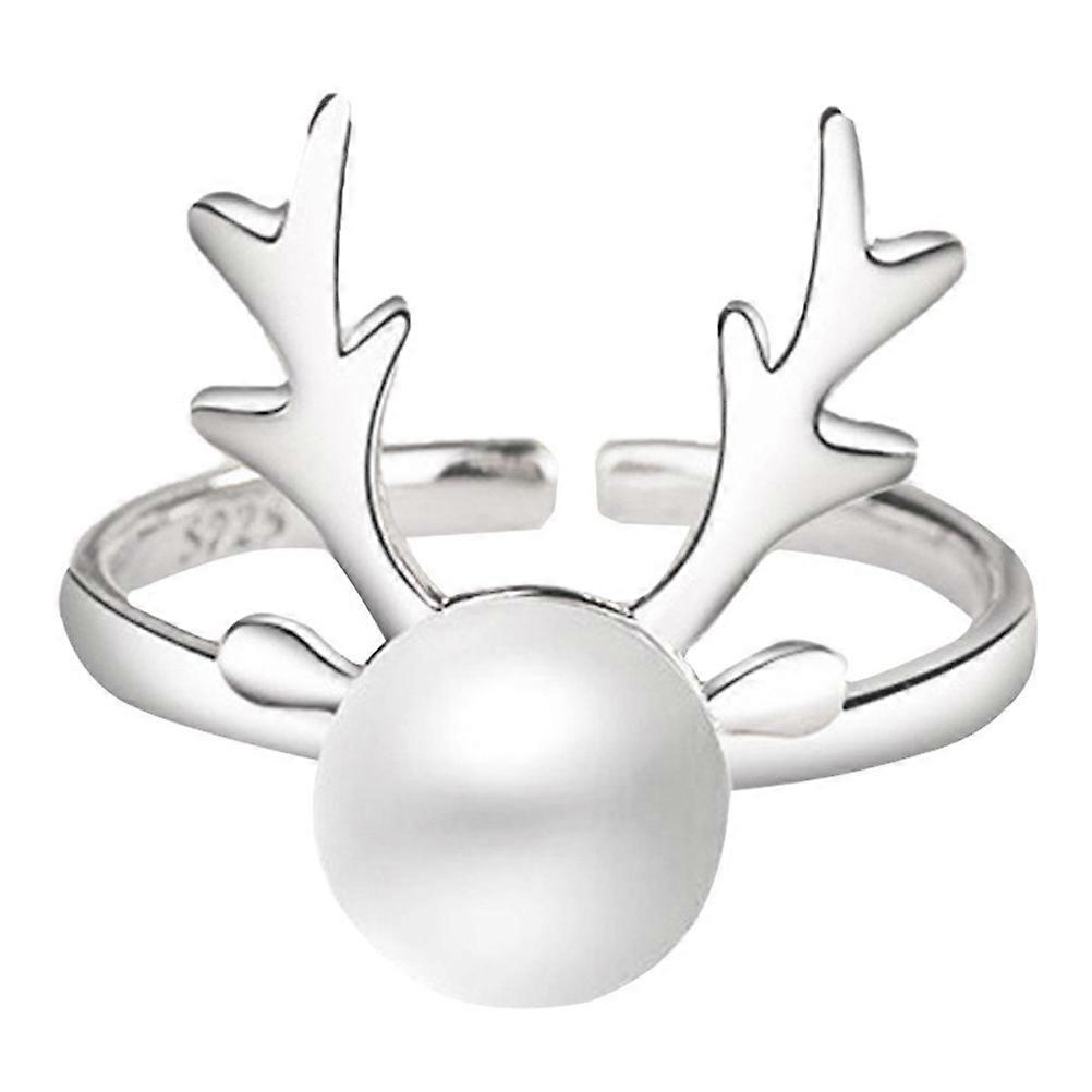Unique Rings Personality Ring Copper And Pearl Material Antler Shaped Ring Christmas Sweet Style Finger Decoration 1Pcs
