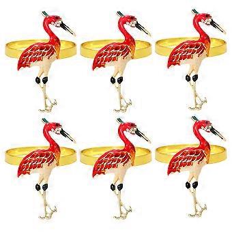 Flamingo Napkin Rings Metal Design Golden Color 6.2X4.3CM Birthday 6Pcs