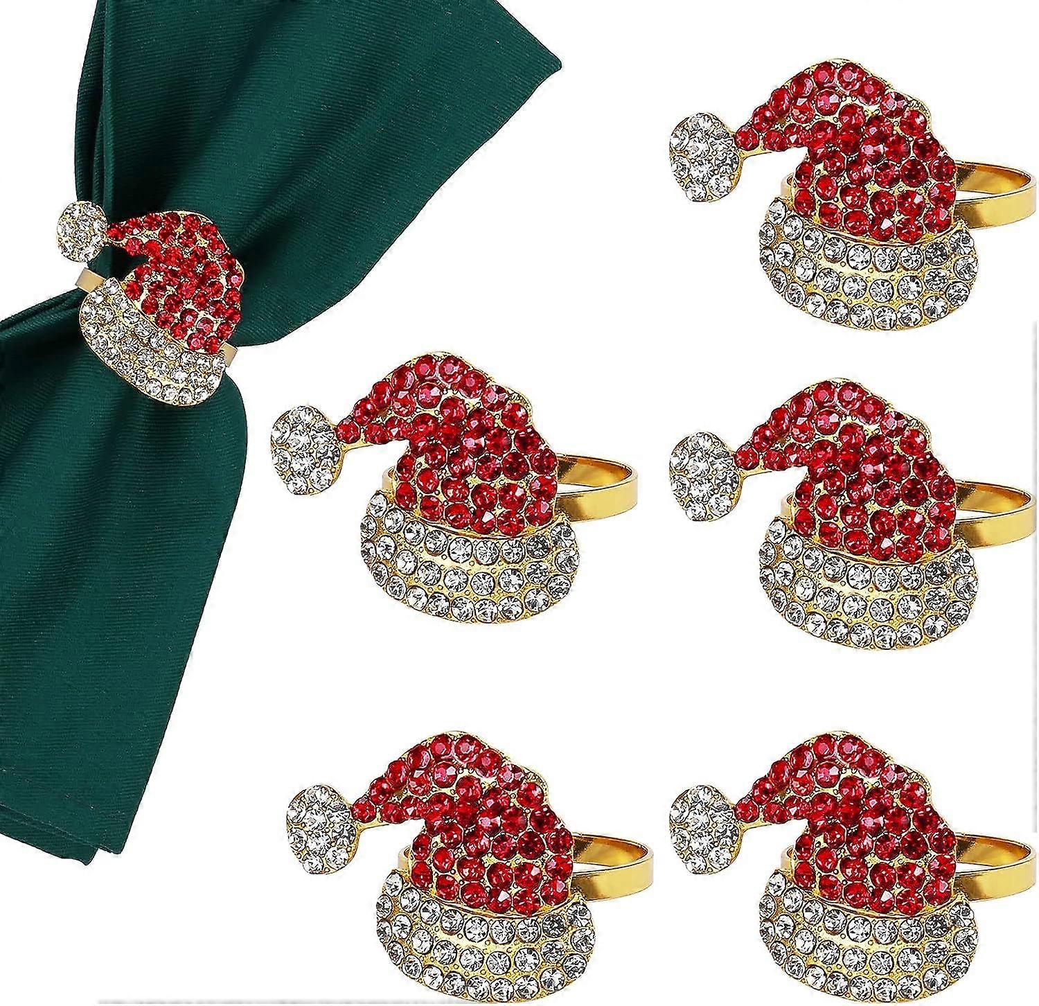 Christmas Hat Napkin Rings Set of 6, Cute Red Hat Diamond Bling Napkin Ri LJP