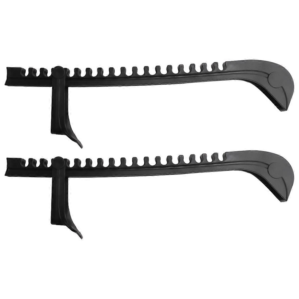 skate cover :serving as essential equipments to protect your blades when walking off the ice, practical to use L size details: sports blade cover in L size is suitable for hockey skates size 7 and up, fits for figure skates size 6 and up; There is an adjustable strap attached to skate guard, appropriate size fits most, it is recommended to check the size before making order Good blade protector: supported by skate guard set, your ice skate blade can be protected better, its liner can absorb moisture from melted ice to prevent blade rust so that your blade can keep well Broad scope: hockey blade guards can be applied to many different skate shoes, you can use in hockey skates, figure skates, ice skates and so on Simple wearing: ice skate guard owns good elasticity, which makes it easy to stretch the guards over your blades, very convenient to put on and , bringing convenience and assistance to your sports Colour: black Material: plastic Size: length about 35cm Package Contents: 1 pair x Ice Skate Blade Covers Only the above package content, other products are not included. Note: Light reflection and different displays may cause the color of the item in the picture a little different from the real thing. The measurement allowed error is +/- 1-3cm.