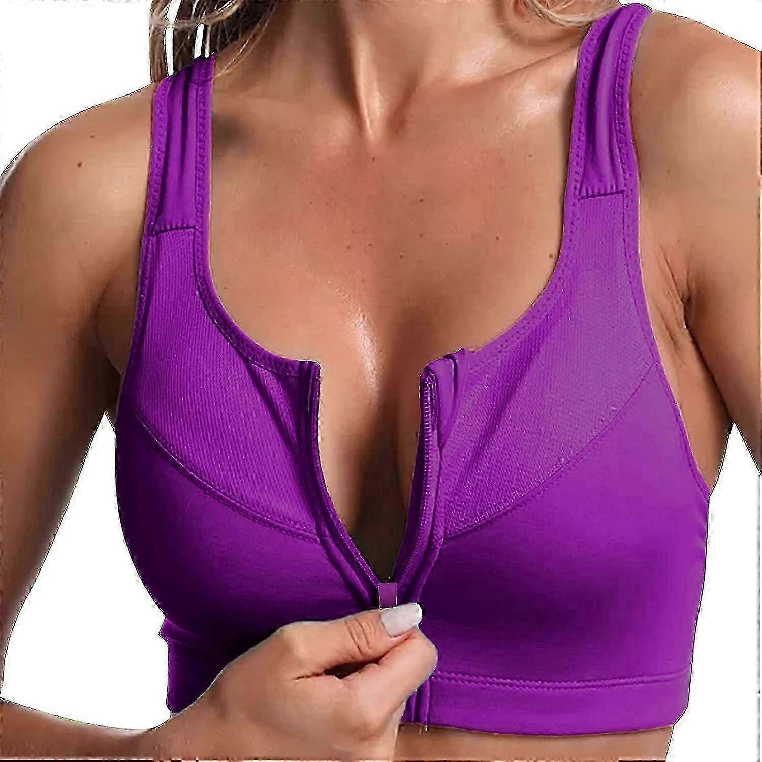 Women's High Support Front Zip Sports Bra - Plus Size Activewear for Running and Fitness S-5XL