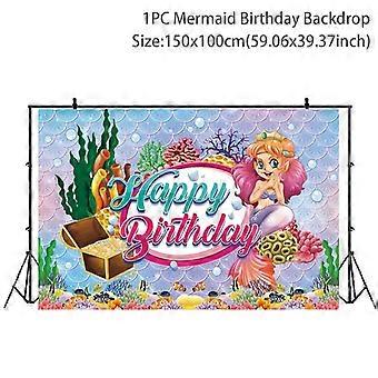 Mermaid Theme Background Backdrop Birthday Party Decoration Kids Baby Shower Little Mermaid Photo Booth Backdrop Hanging Flag