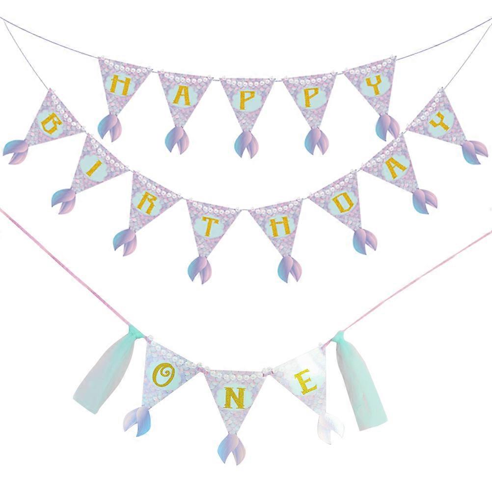Mermaid Theme Banner Set Party Theme Matching Baby Room White Card Paper 2Pcs