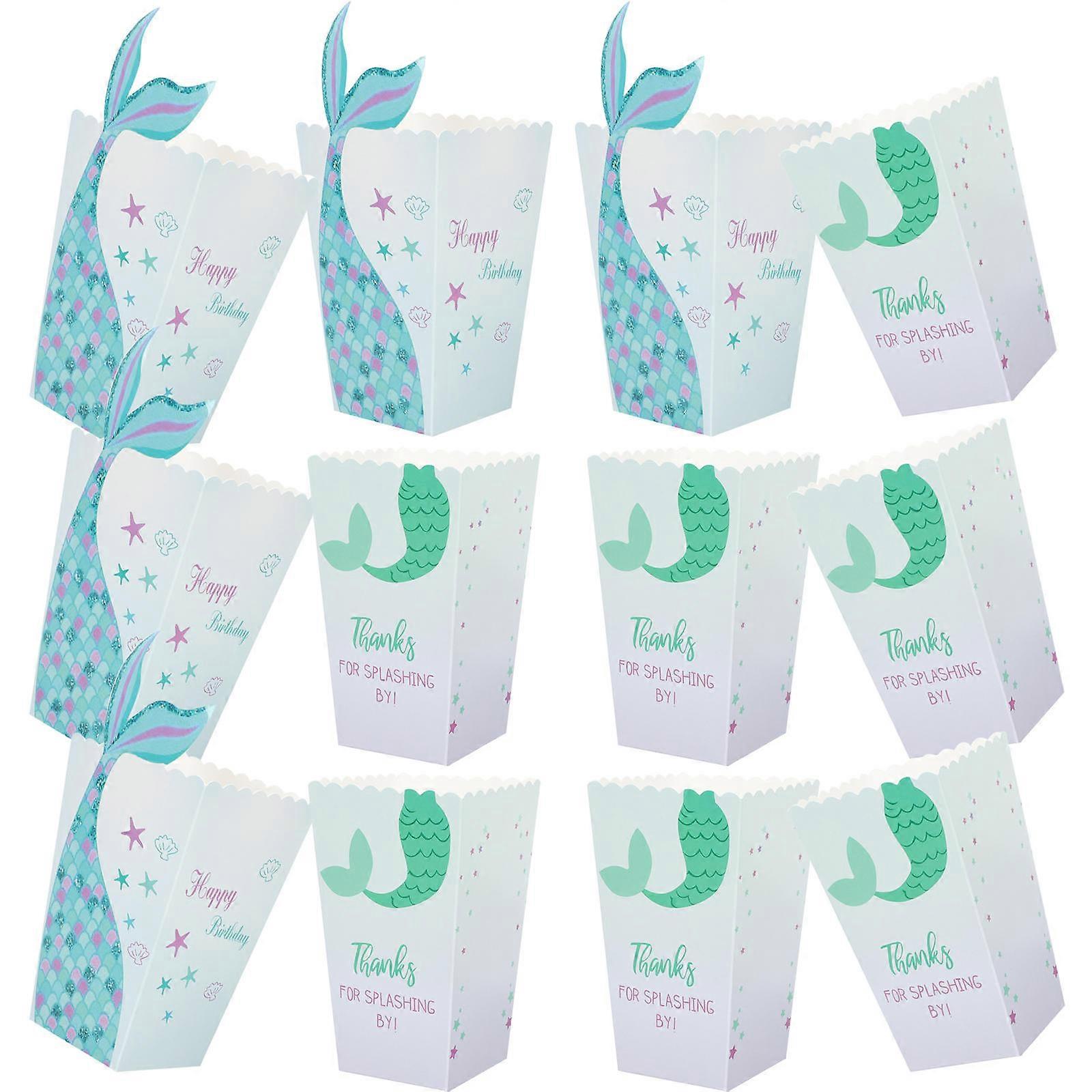 Mermaid Pattern Popcorn Box for Movie Night Treats and Party Favors Assorted Color Ivory Board