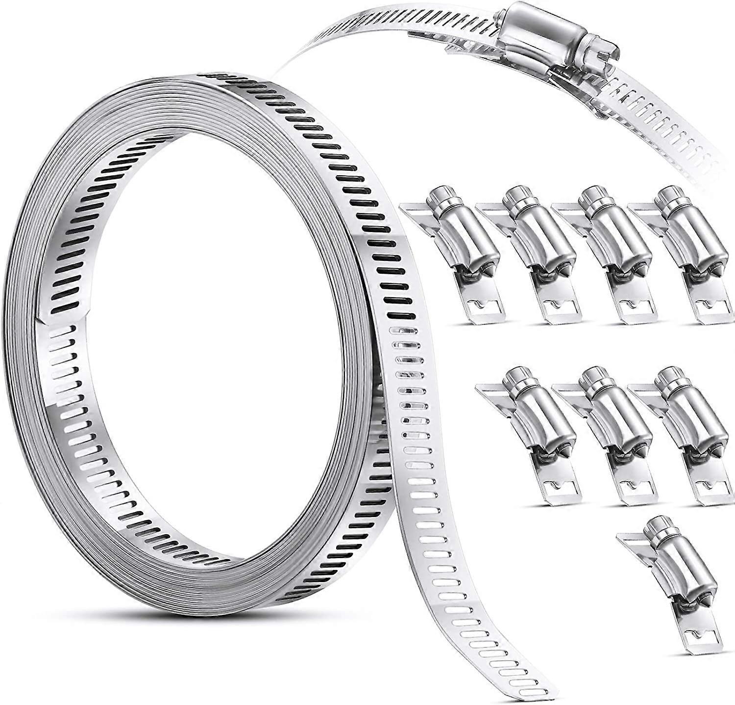 Hose Clamp Steel Worm Clamp, Webbing Hose Clamp with Tie Downs, 304 Stainless Steel Clamps Screw Adjustable Hose Clamp (9 Pieces, 11.5 Feet)