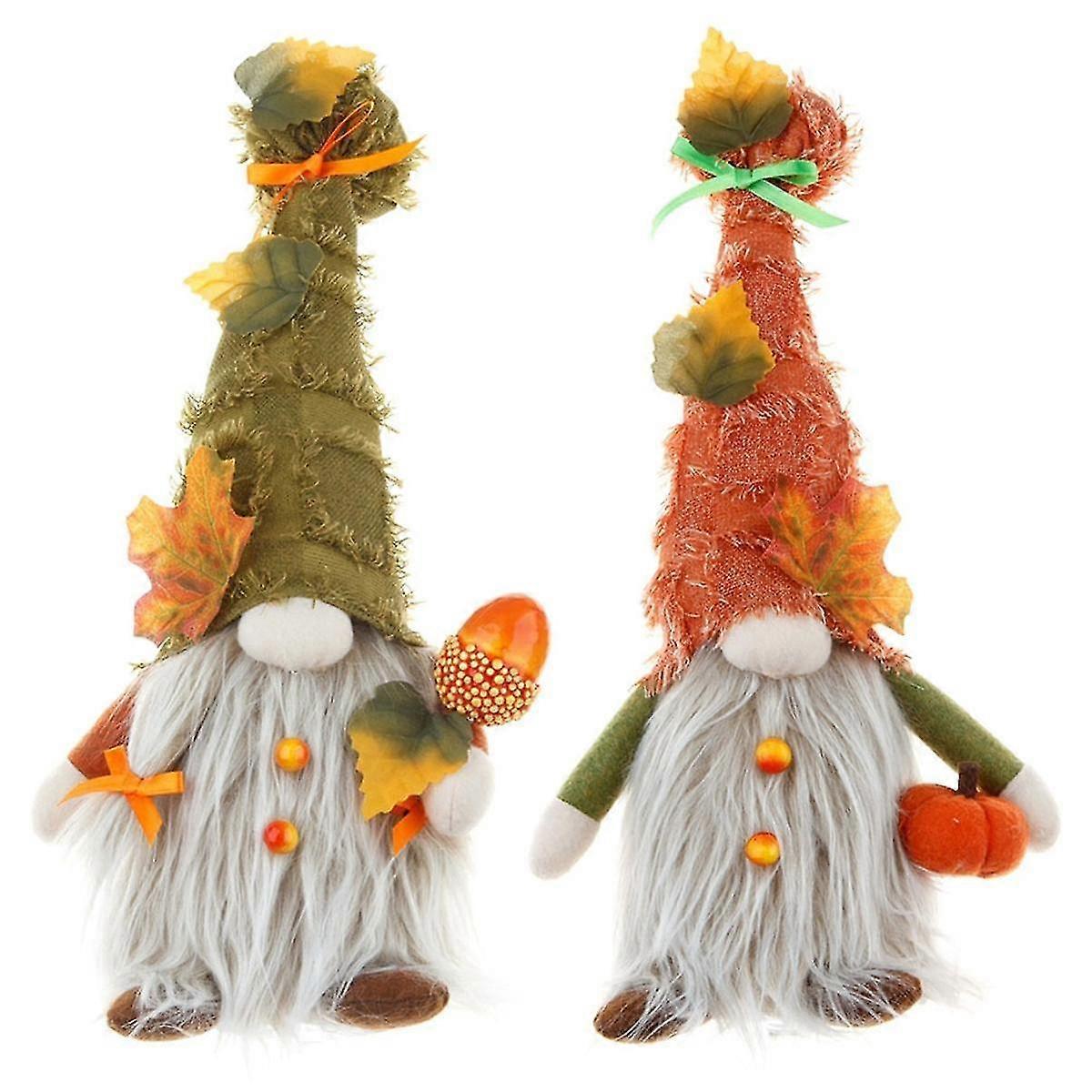 Fall Thanksgiving Gnomes Plush Decorations - 2 Pcs With Lights Autumn Swedish Tomte Doll For Home T