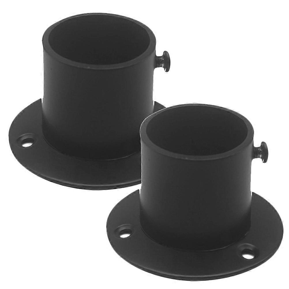 Wardrobe Closet Rod Holders Stainless Steel Flange For Curtain Rod Stable Support Black Circular Shape 2Pcs