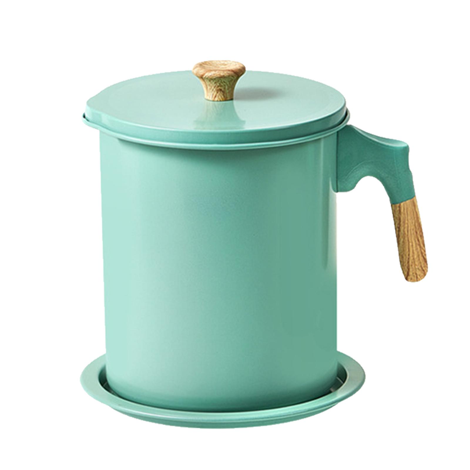 Household Mesh Oil Filter Tank with Lid Large Capacity Grease Container Oil Storage Pot Specification: Material:Stainless Steel  Size:15 x 14cm Color:Light Green,Dark Green,White, Weight:500 g