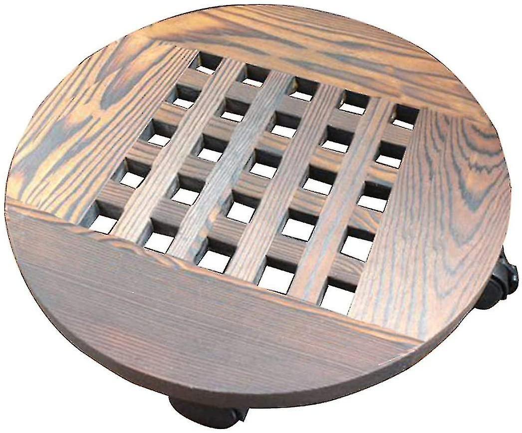 Wooden Planter Caddy Potted Plant Stand With Wheels, Rolling Round Flower Pot Base Roller Mobile