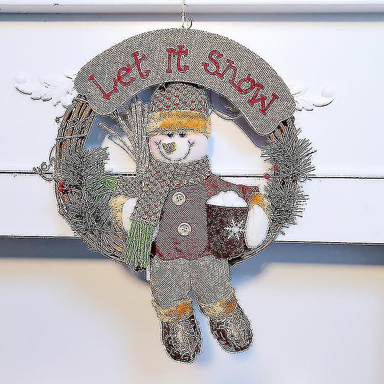 Wooden Christmas Wreath Santa Claus Snowman Rattan Ring Home Decor Pendant Door Hang Christmas Decor Christmas Ornaments