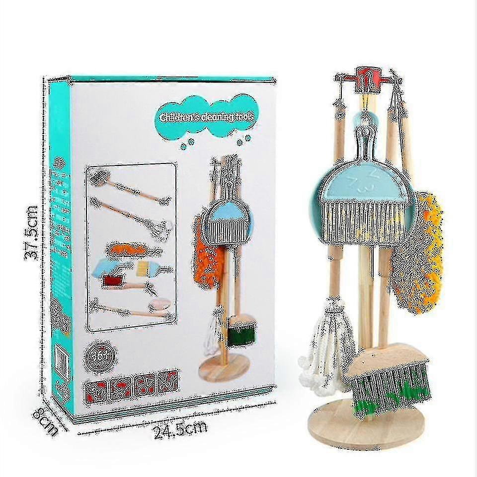 Wooden Detachable Toy Cleaning Set, Kids Cleaning Toys 6 Piece - Hanging Stand Play Kitchen Cleaning Tools For Kid Gift