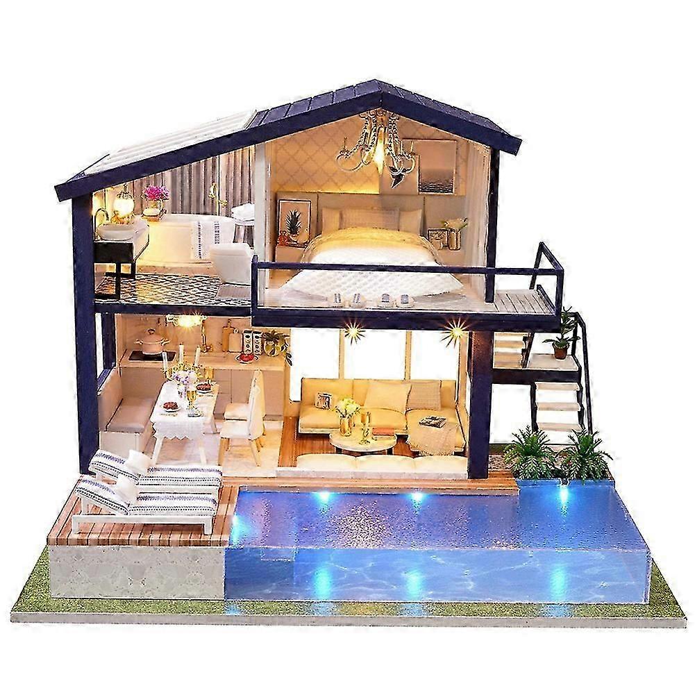 Wooden Miniature Assembling Decorative Ornament Dollhouse For Kid Child (without Dustcover)