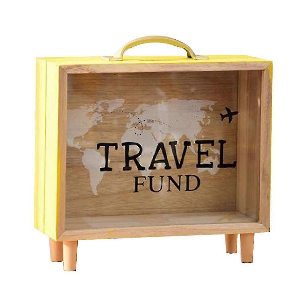 Wooden Money Coin Box Storage Saving Pot Piggy Bank Bedroom Desk Ornament Decor