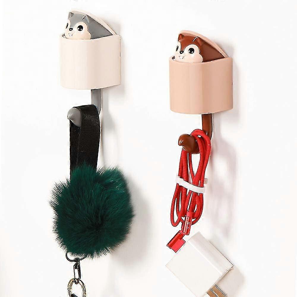 Creative Design---The hook looks very cute. When not hanging, the squirrel hides inside and sleeps. When hanging, the squirrel will stretch its head. Makes your life more interesting. Multifunctional hook --- perfect for displaying baseball caps, winter coats, jackets, scarves, wallets, belts, hats, backpacks and robes. Helps to keep order. Specification: Material: ABS Color: pink, blue, grey, brown Size: 98*53*51mm Package includes 4 x wall hooks