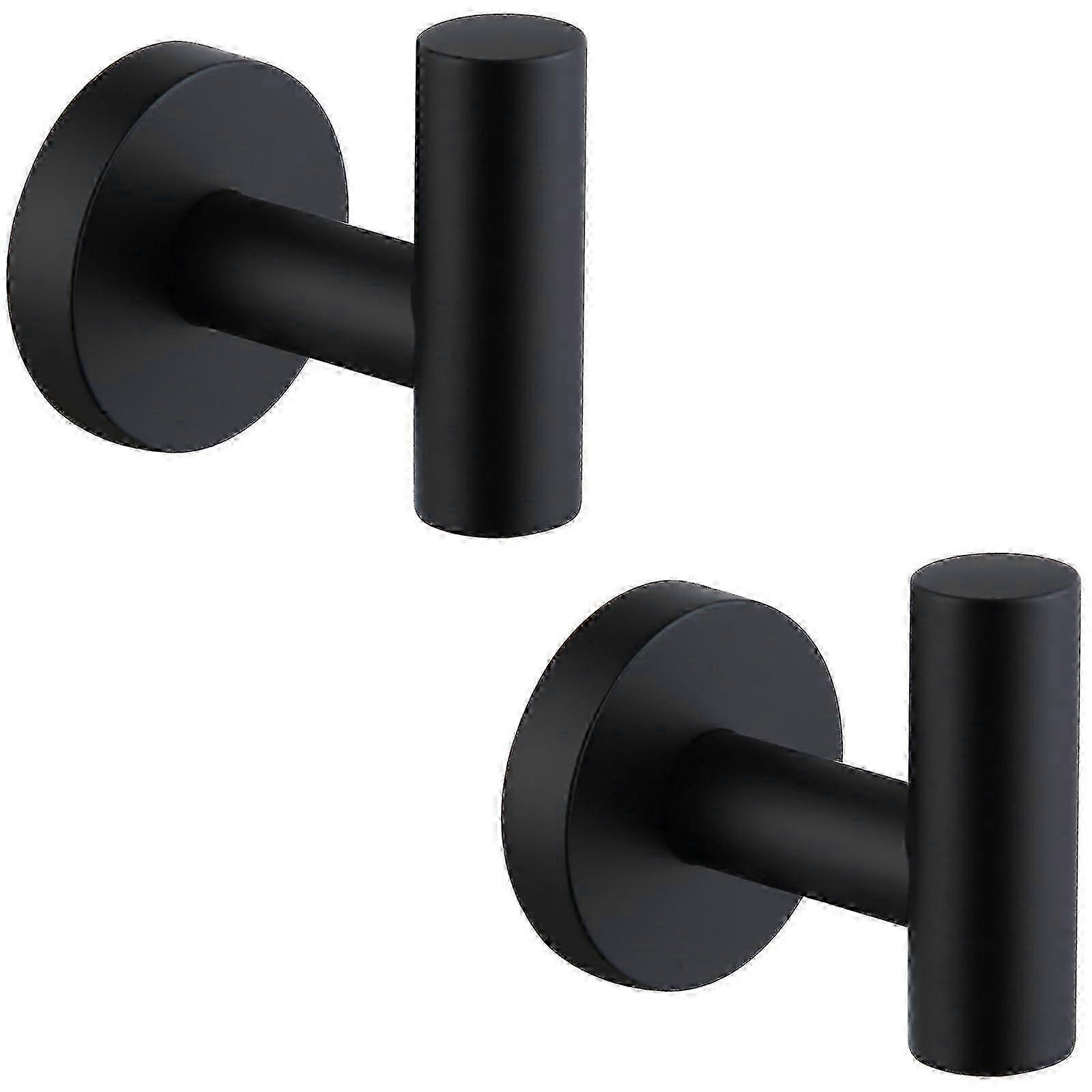 Stainless Steel Wall Hooks 2-Pack - Matte Black Bathroom Organizer