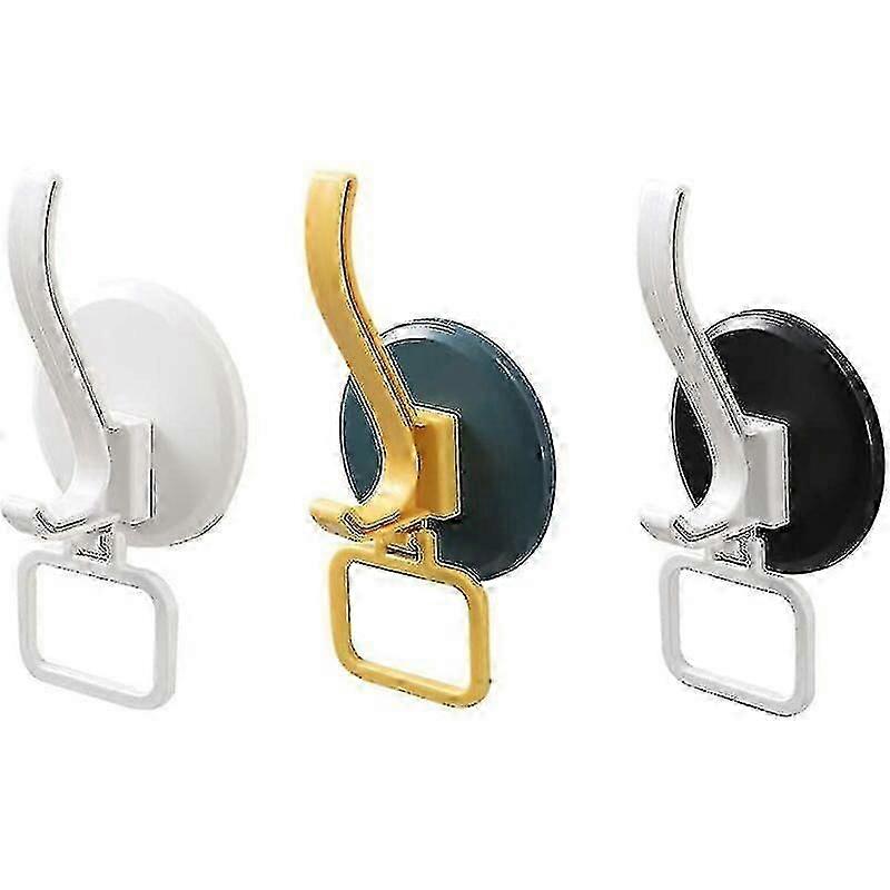Self Adhesive Hooks 3 Pieces, Robe Bath Towel Hooks, Plastic Wall Hanger Waterproof (white Blue Black)
