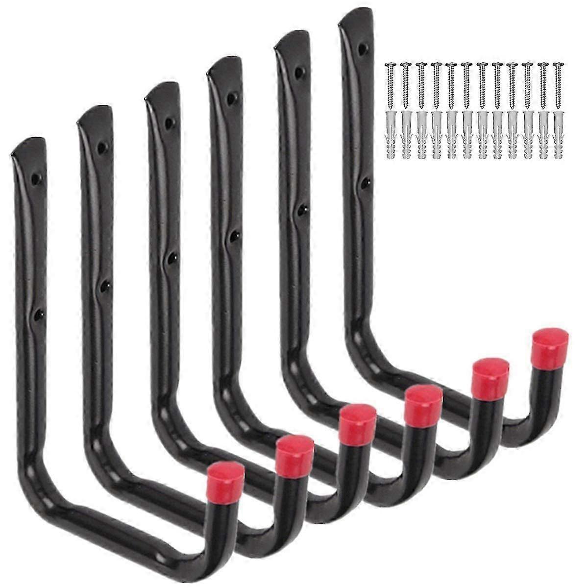 MULTI-PURPOSE: Heavy duty garage storage hooks,Ideal for freeing up space in your shed or garage,storing bikes, ladders, lawn mowers, hoses and tools. HIGH-QUALITY STEEL: The heavy duty garage hanking hooks are made of tubular metal which is durable and sturdy, Powder coated, rust resistant construction. SIZE: 6 hooks total 1 size,7.87"(H)*5.71"(L),=0.63",the max load capacity of each one is 25 Lb. EASY INSTALLATION: Premium garage hooks can be installed on a variety of surfaces Mount on wall, studs, bricks with screws blocks or hardwood.