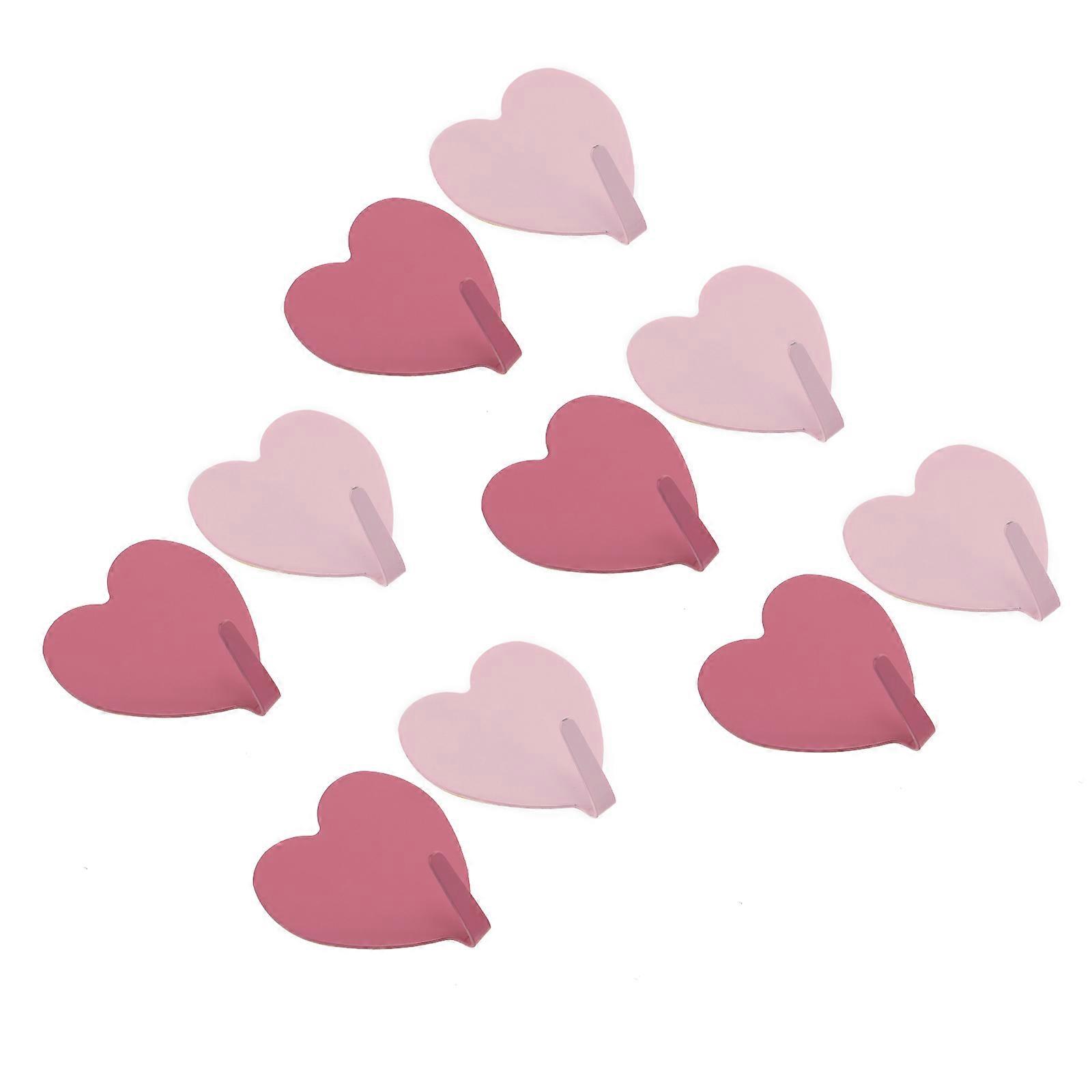 Heart Shaped Non Punching Wall Hooks 10pcs Set Easy Install Traceless Hangers for Clothes Bags Home Storage Decorative Rosy Pink Design No Wall
