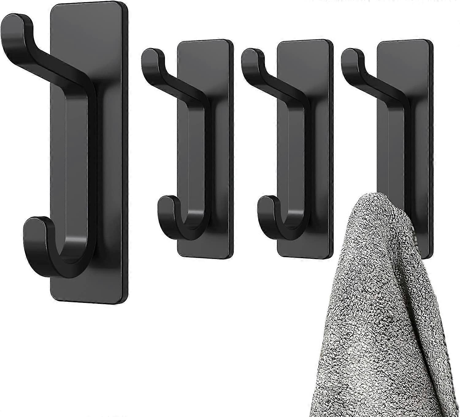 Adhesive Wall Hook, Bathroom Towel Holder, Kitchen Tea Towel Hook, Adhesive Coat Hook, Wall Attachment Without Drilling, Waterproof, Rustproof, Black,