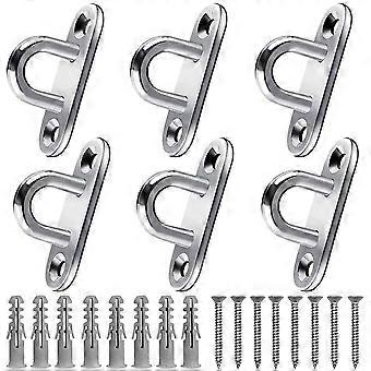 خطاف من الفولاذ المقاوم للصدأ (6 قطع) - حامل حائط شديد التحمل - خطافات معدنية على شكل حرف U مع 2 فتحة تحمل ما يصل إلى 40 كجم من الوزن ، خطافات حائط لولبية معطف H