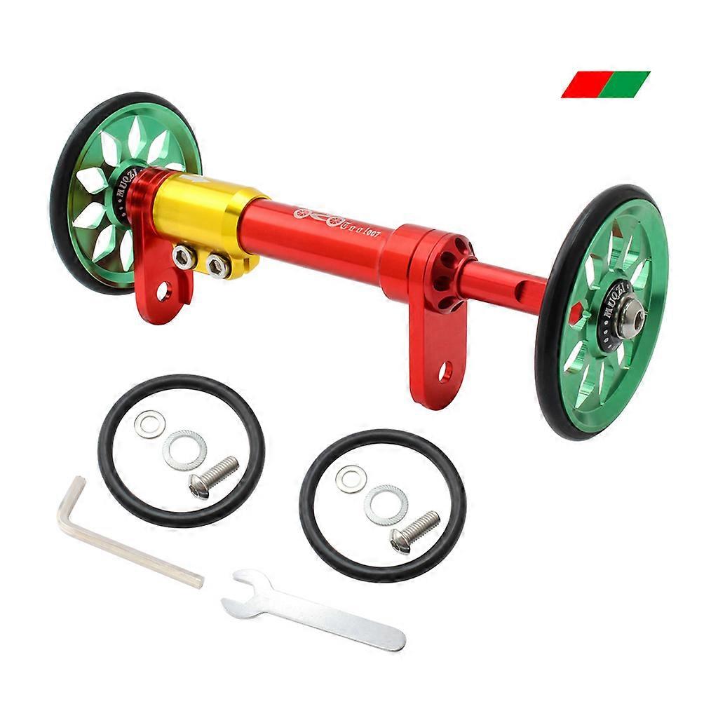 Features: The main body is expandable and for a variety of frame types. Stretching The built-in telescopic rod can improve the stability of the bike's center of gravity when pushing, and it is not simple to tilt. This item is made of aluminum alloy material and processed by CNC technology. The product is lightweight and has improved strength. It has a hollow design, exquisite workmanship, anodized. Enlarged design, don'for t worry about the small diameter of the easy wheel causing the shock to scrape the ground. The unique designed easy-wheel mounting position is retracted, avoiding the risk of wheel hitting. Specifications: Color: Bracket: Black/Red/Gold Easy Wheel: Black/Red/Gold/Blue/Green/Color Extension design: telescopic lever Size:12x10x4cm Compatible With bro-mpton bike. Note: Please allow 0-1cm error due to manual measurement. Make sure you do not mind before you bid. Due to the difference between different monitors, the picture may not reflect the actual color of the item. Thank you! Package includes: Single Bracket: Easy Wheel Holder + Wrench + Screw + Washer Set: Easy Wheel Holder + Two Easy Wheels + wrench + screws + washers .