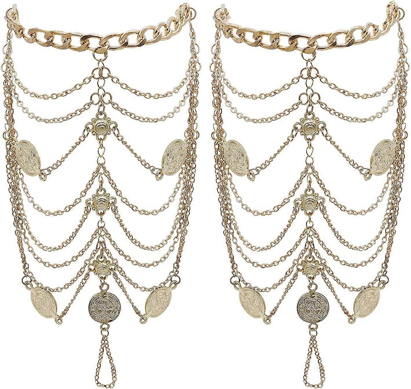 Material Metal Colour Golden Style Adjustable,Box Age range (description) Adult Retro Bohemia Anklet: Vintage style women foot anklet, looks pretty and mystical. The ankle chains for women design with elegant tassel and blessing coin elements, classic Boho style, make you eye catching in the crowd. Adjustable Foot Chain: 22cm+5cm adjustable (8.66 inch+1.97 inch), the women anklet chain is suitable for foot size: 4, 4.5, 5, 5.5, 6, 6.5; Not for foot size: 3 and 3.5; Please make sure you are the right foot size before purchasing. Metal Boho Anklets: Fashion silver beach anklet is made of alloy, and the surface go though plating treatment, smooth and comfortable for daily wear. Special design and unique structure make the tassel beach anklets looks special and lovely, wonderful gift idea for you and your friends. Widely Application: You can wear the vintage tassel chain in any summer water occasions like: beach, swimming pool and water party. The toe ring anklet also can be used as a beach barefoot sandals, dancing party anklets, performance anklets etc, make you more special. What You Get: 2 pcs silver anklets for women, for decent present giving.